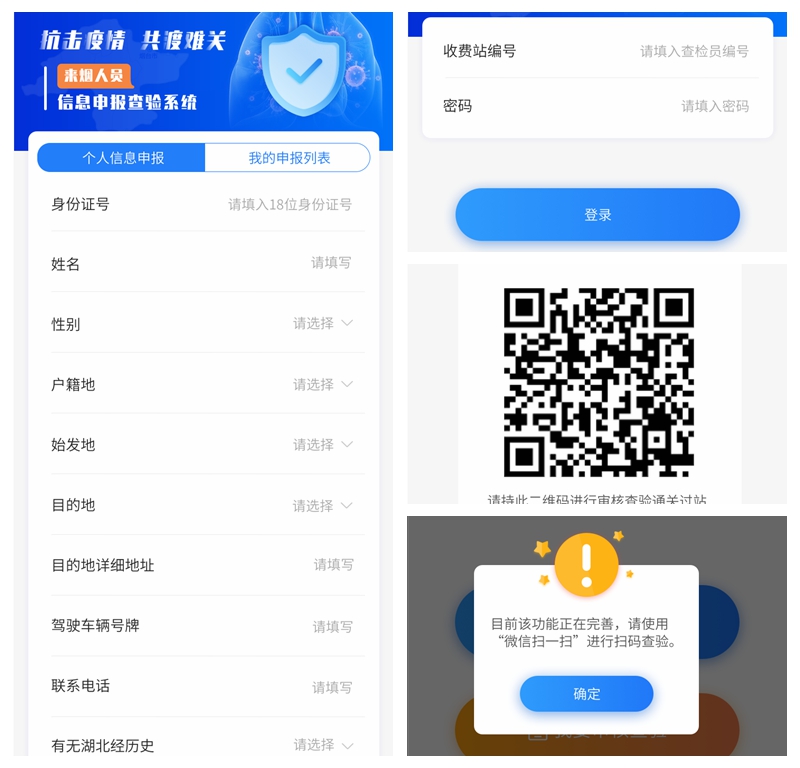 为打赢返城高峰防疫攻坚战,助力交通联防防疫工作,海颐紧急开发了战疫神器“码上填报查验系统”,通过提前登陆高德导航或烟台交警微信公众号,进行码上填报、码上查验,实现车辆和人员的快速安全通行。该系统现已广泛应用于福山、轸格庄、莱山、杜家疃等烟台市58个高速收费站和烟台火车南站、火车总站,烟台港口、烟台机场等场所。通过实现无接触过站,可有效避免病毒接触传播,大幅减少查验登记工作量,有效提高过站效率。以往手工方式检查过站,单车平均需要耗时2~3分钟,采用系统后平均耗时仅为15~20秒,安全通行效率最高提升10几倍。